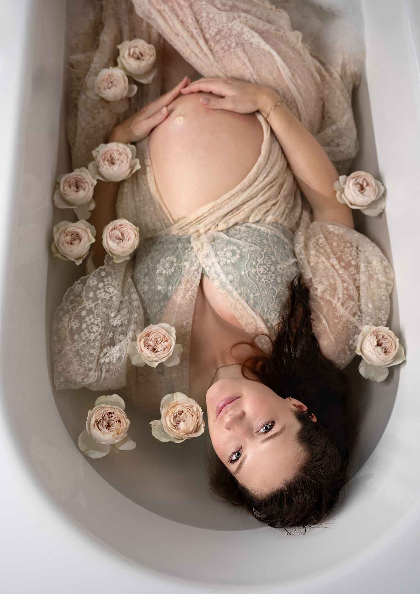 Grace zeigt die weiche, zarte Seite der Schwangerschaft. Getragen-Sein, Nähe und Verbindung stehen im Mittelpunkt.
